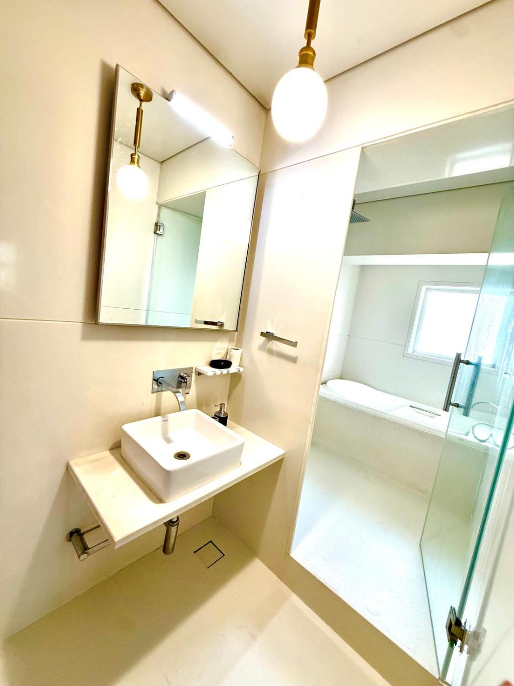 Three-Bedroom Premium Apartment. This apartment provides a hot tub. This spacious apartment comprises 1 living room, 3 separate bedrooms and 3 bathrooms with a bath and a shower. The well-equipped kitchen has a refrigerator, kitchenware and a microwave. This apartment is air-conditioned and features a seating area with a flat-screen TV, a washing machine, soundproof walls, a tea and coffee maker, as well as a wardrobe. The unit offers 6 beds.